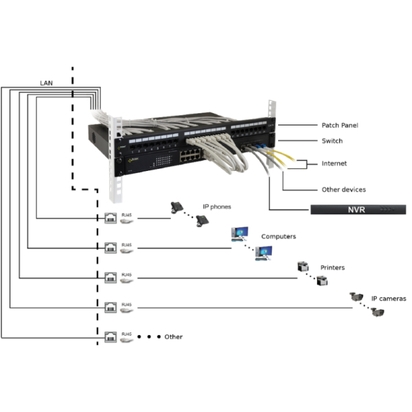Application: Patch panel is the final element of the structured network cabling in RACK19” cabinets. Fundamental element of telecommunication networks.