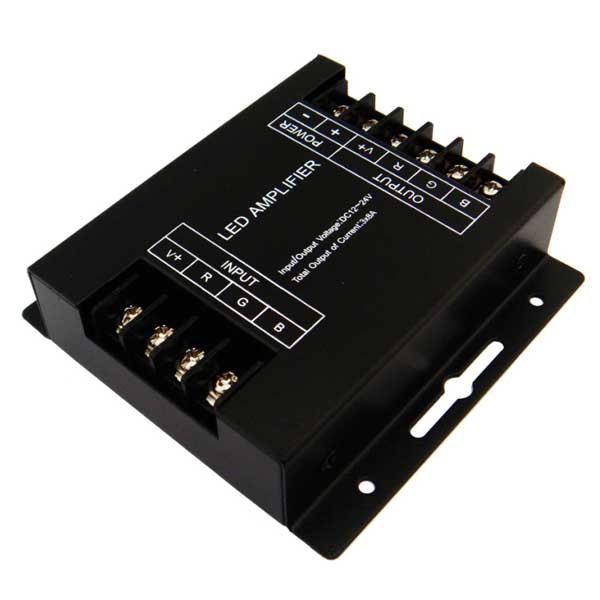 Eνισχυτής σήματος για να μπορείτε να συνδέεται περισσότερα μετρά RGB ταινία σε έναν Controller . Με στεγανότητα IP20 . Προτείνεται εσωτερική εγκατάσταση .